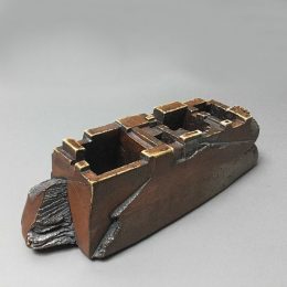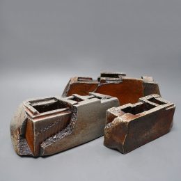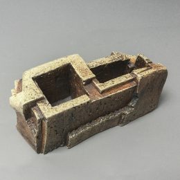 Excavations – were inspired by a simple rough hewn ancient block of stone seen in the museum at Trier, Germany. It made me want to explore the idea of the man-made against the natural quality of leather hard clay. Sometimes the simplest idea can promote a most unexpected and interesting journey. These were soda glazed to retain the textures of the cut and broken surfaces. Forms became more complex over time as the work naturally progressed.