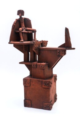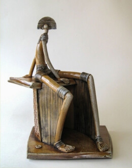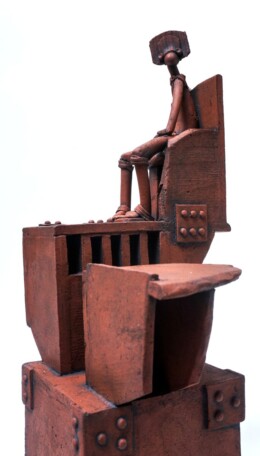 Until now all the previous figures had been in static poses – now I wanted to give them movement but for that to be more about body language than being anatomically correct; the pose of those seated responding to the seat. Slowly the seat becomes a stage and the journey continues.