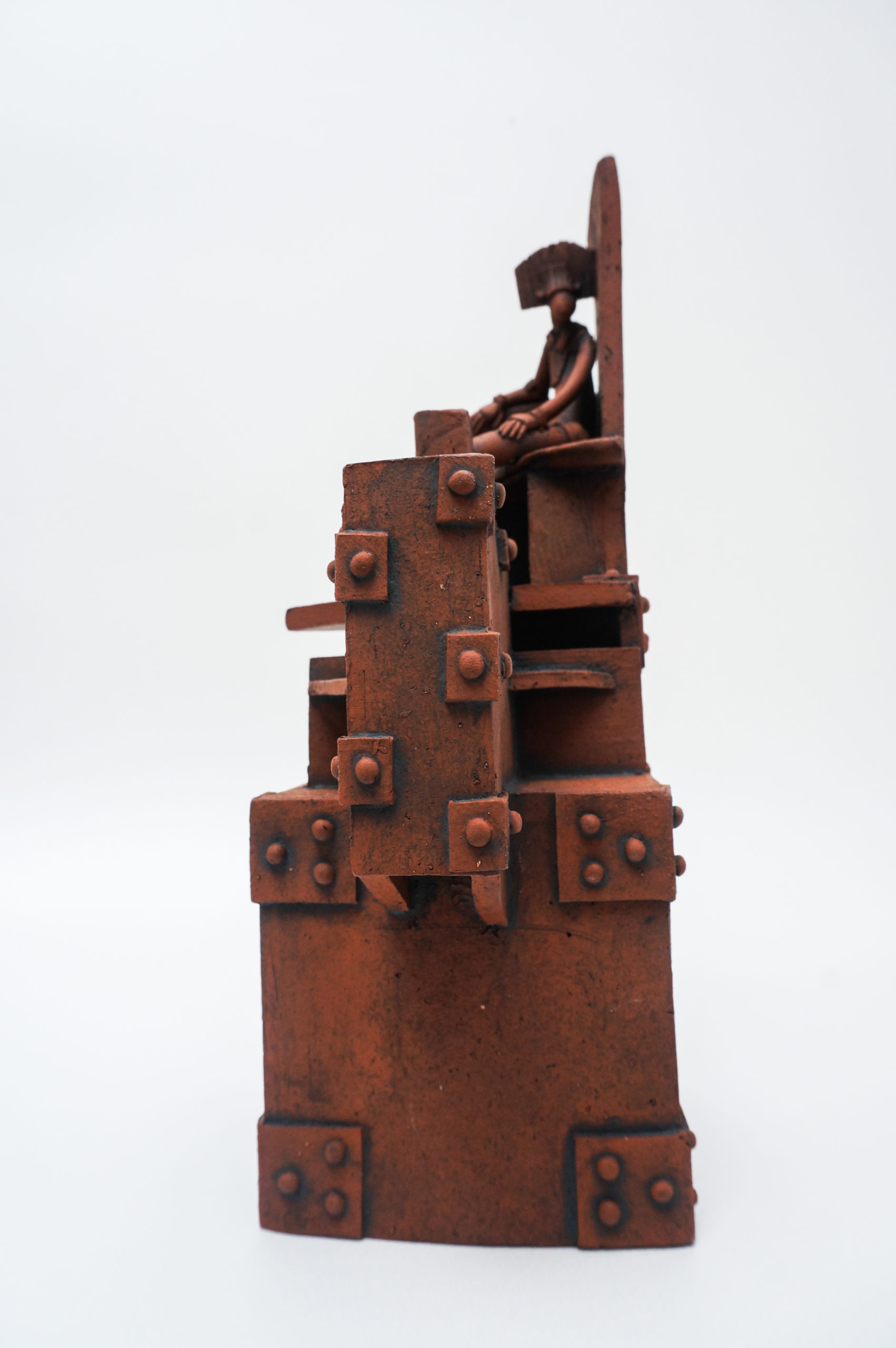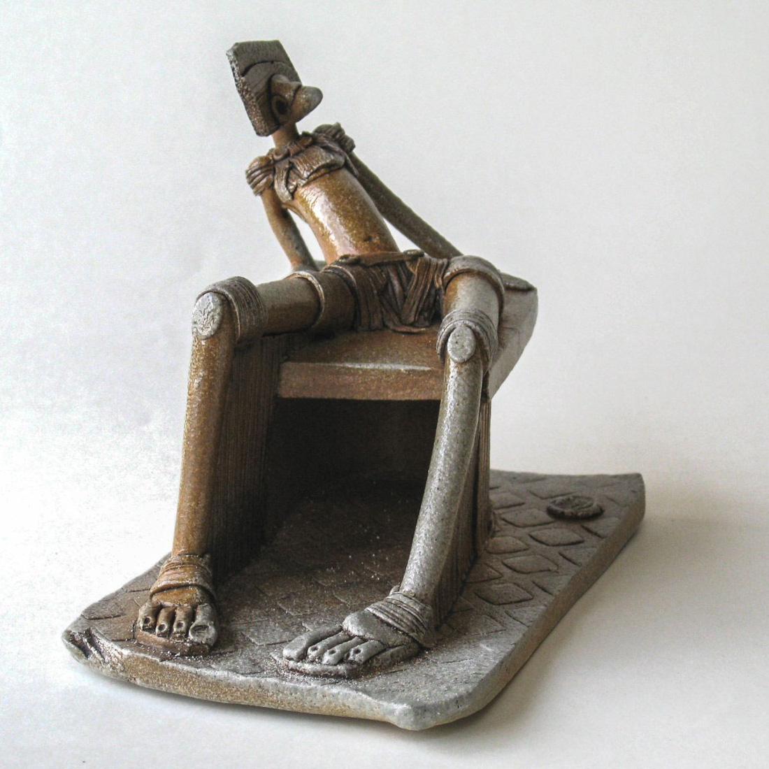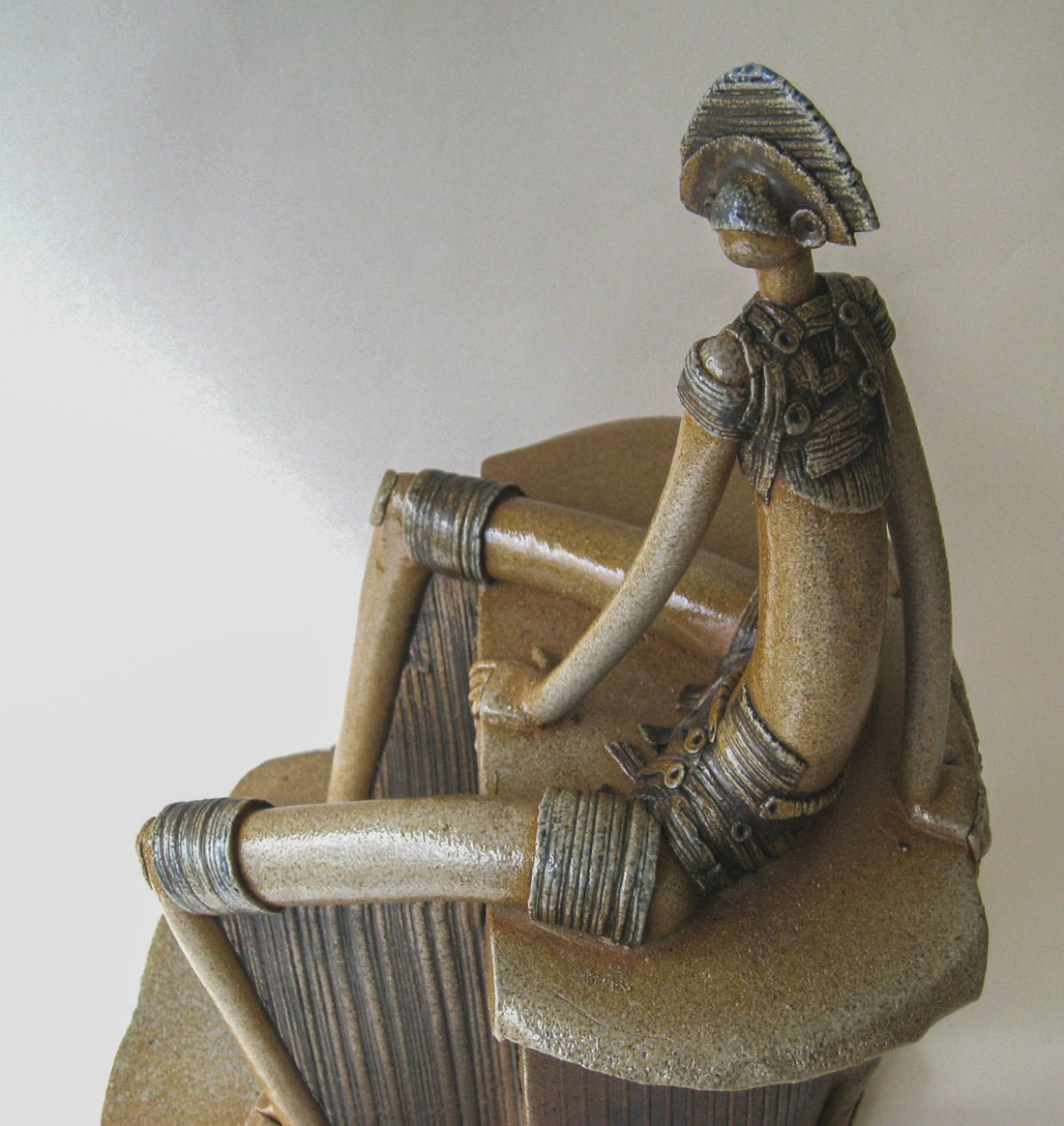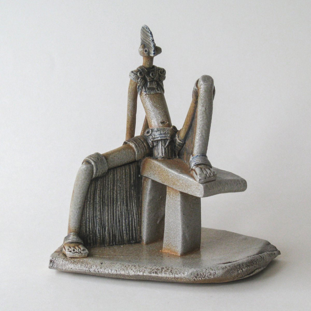 Until now all the previous figures had been in static poses – now I wanted to give them movement but for that to be more about body language than being anatomically correct; the pose of those seated responding to the seat. Slowly the seat becomes a stage and the journey continues.